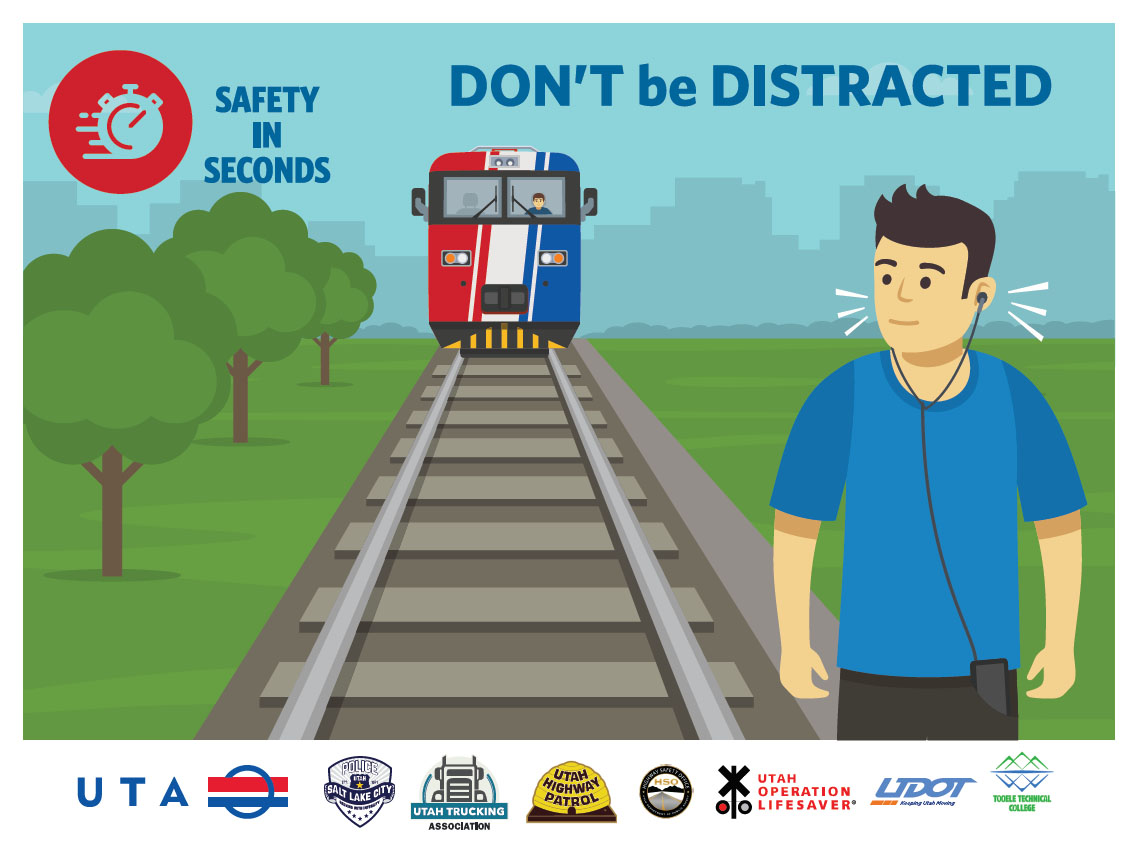 UTA Police, Salt Lake City Police, and Utah Highway Patrol will be educating drivers and pedestrians about rail safety at the Midvale Fort Union Station, Central Pointe Station, and Provo Central Station crossings.
